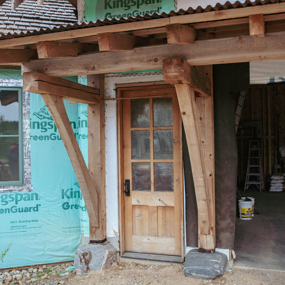 This project presented a unique challenge, as the homeowner, with a keen eye for design, felt the existing work lacked balance. Their suggestion: adding a roof over a window on the right side of the house. Fortunately, leftover timber from previous projects proved perfect for this petite structure. Though small, it reflects the same dedication to tradition as its larger counterparts, each joint crafted using locally sourced cherry and eastern red cedar.