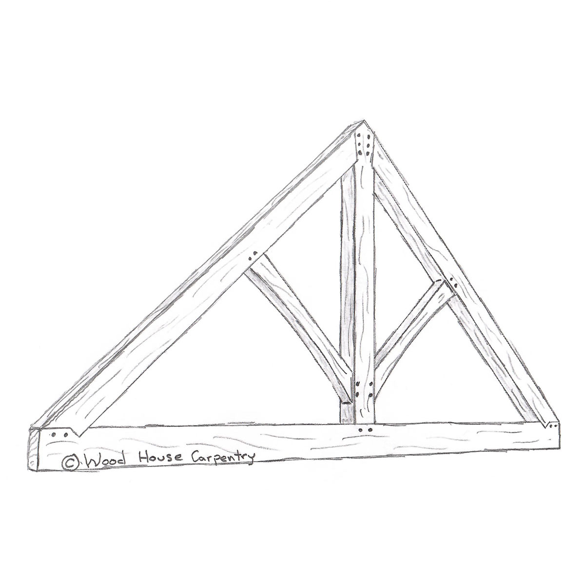 What’s in a name? The king post truss is royalty through and through. Its presence evokes elegance while its construction boasts strength and versatility. The king post stands tall at the center of the design supported by a pair of struts. Mortise and tenon joints, known for the fortitude and durability hold the truss together.